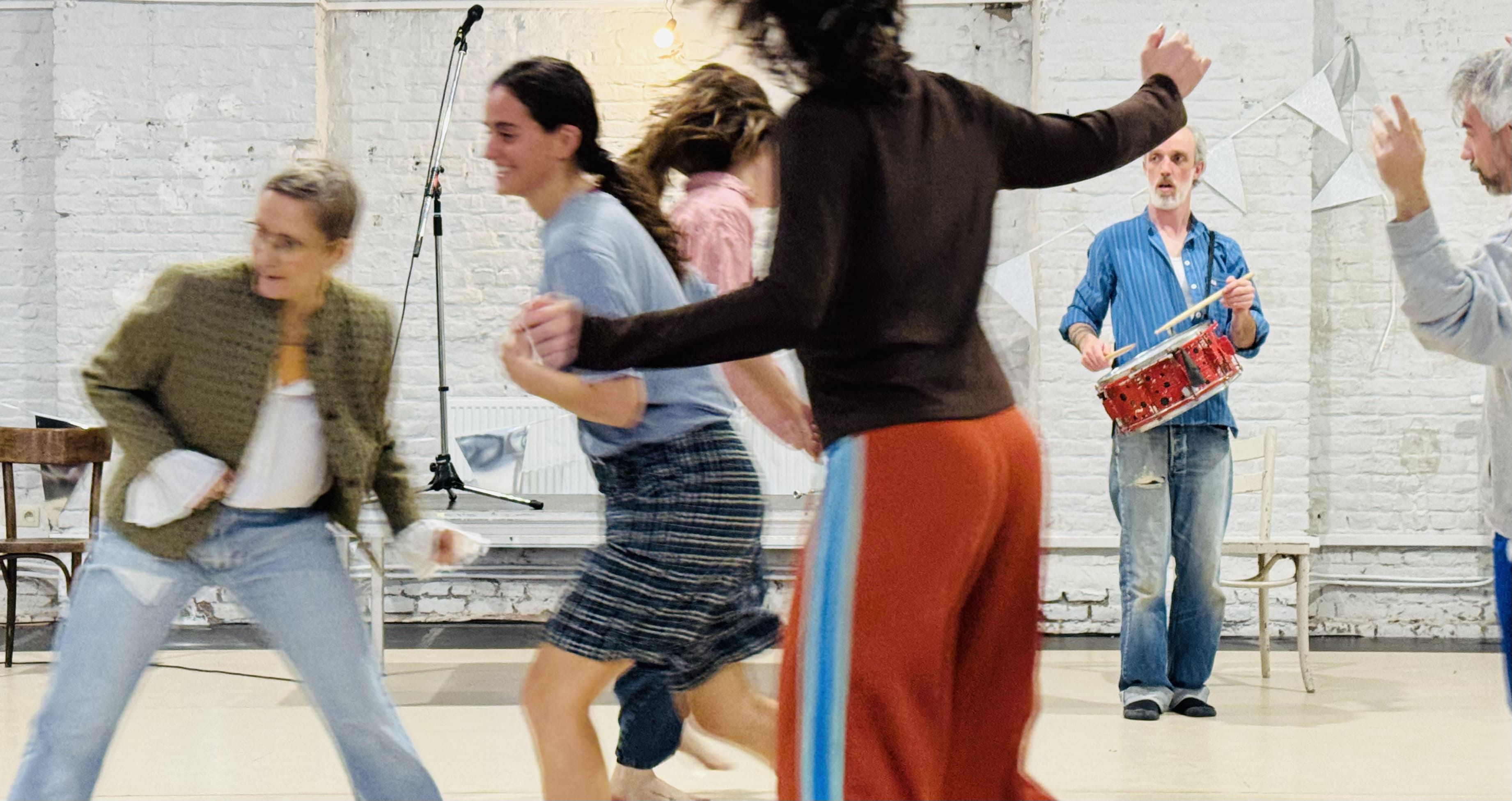 In een feestelijke sfeer zorgen dans en koperblazers voor vreugde, energie en saamhorigheid. De artiesten komen samen om een parade voor te bereiden en nodigen het publiek uit om deze laatste repetitie mee te beleven. Ze komen in beweging, stemmen zich op elkaar af, observeren elkaar, helpen elkaar. De gebaren zijn eenvoudig, soms fragiel, altijd oprecht. Hier gebeurt beweging nooit alleen: ze wordt met en naar de ander toe opgebouwd, in luisteren en aanpassen.